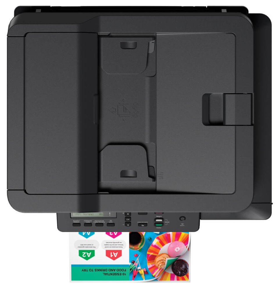 Tiskárna disponuje automatickým podavačem dokumentů s kapacitou 20 listů pro pohodlné skenování a kopírování vícestránkových dokumentů. Bezdrátové připojení Wi-Fi a podpora Wi-Fi Direct umožňují snadný tisk z mobilních zařízení bez nutnosti připojení k síti.