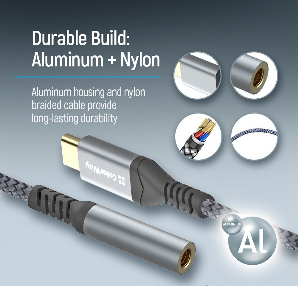 Pouzdro je vyrobeno z odolné hliníkové slitiny, která zajišťuje dlouhou životnost a elegantní vzhled. Kabel s nylonovým opletením odolává opotřebení a zamotání při každodenním používání.