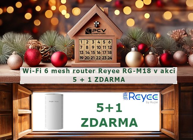 Jedinečná Vánoční nabídka 5+1 ZDARMA; PV378090 - Reyee RG-M18 1800M Wi-Fi 6 Dual-band Gigabit Mesh Router;Více info