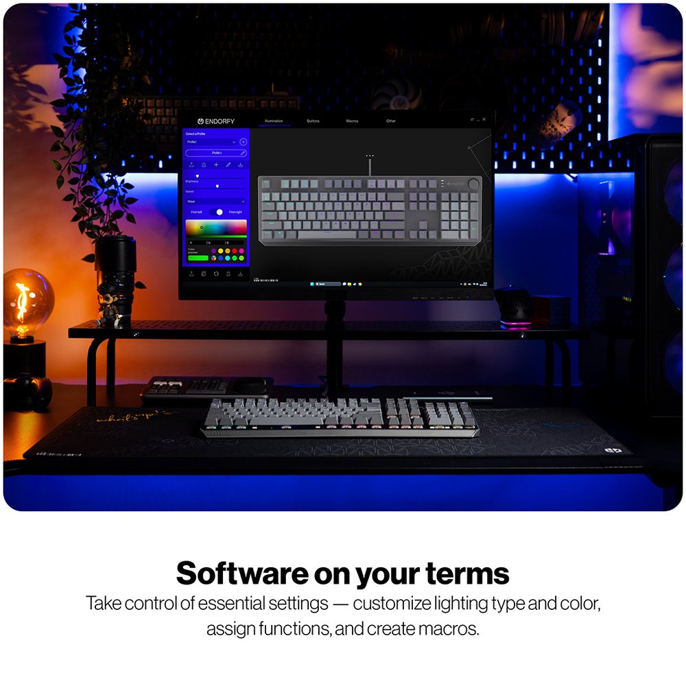 Dedikovaný software pro Windows 10 a novější poskytuje úplnou kontrolu nad klávesnicí – od přizpůsobení typu a barvy podsvícení až po přemapování kláves a tvorbu maker podle vašich potřeb.