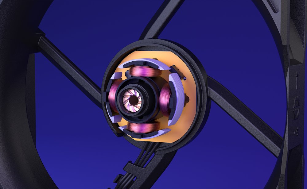 Rychlost 1900 ot./min (± 10 %) je vyšší ve srovnání s ventilátory třídy 120 mm a 140 mm, což zajišťuje vysoký výkon a nižší teploty komponent. Pokročilé FDB ložisko minimalizuje tření a snižuje hlučnost při zachování dlouhé životnosti až 80 000 hodin provozu.