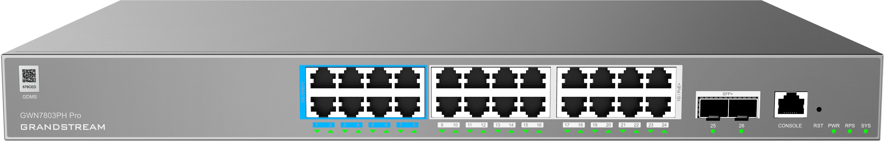 (Registrace)Grandstream GWN7803PH Pro L2++ Managed switch, 24x Gb RJ45 PoE, SFP+