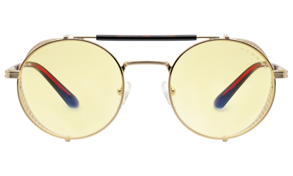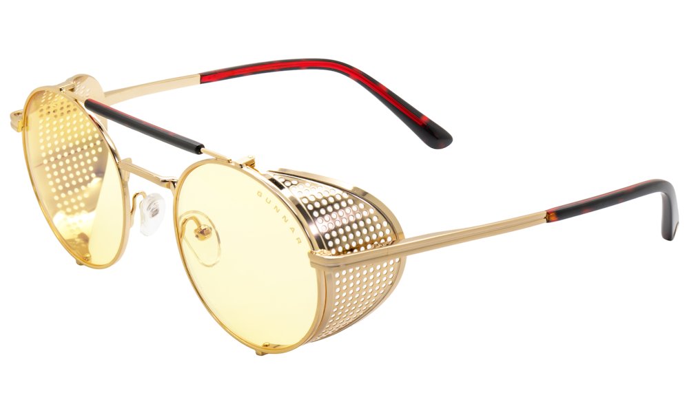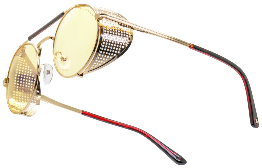 Patentovaná technologie GUNNAR Focus s povrchovou úpravou G-Shield Plus představuje štít, který chrání oči před únavou bez ohledu na délku aktivit. Kulatý rám z nerezové oceli ve zlatém provedení říznutý steampunkovým stylem vytváří originální design, který se běžně nevidí – snad jen ve hrách. Odnímatelné boční štítky vám umožní upravit vzhled do postavy Moxxi Takže ideální třeba na cosplay? Díky flexibilním pantům sedí jako ulité na každé velikosti hlavy.