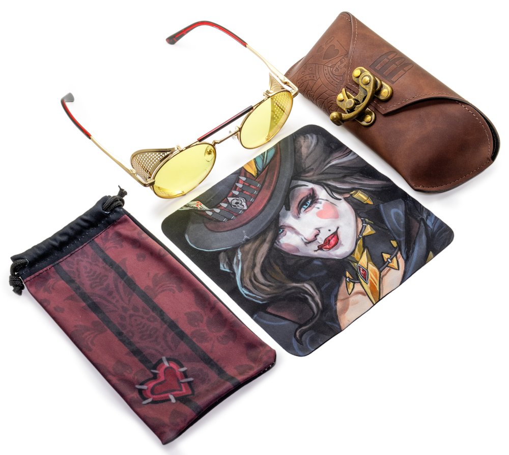 Tyto jedinečné herní brýle kombinují steampunkový design s pokročilou technologií ochrany očí od společnosti GUNNAR. Kulatý rám z nerezové oceli se zlatou povrchovou úpravou je doplněn odnímatelnými bočními štítky, které dodávají brýlím charakteristický vzhled inspirovaný postavou Moxxi.
