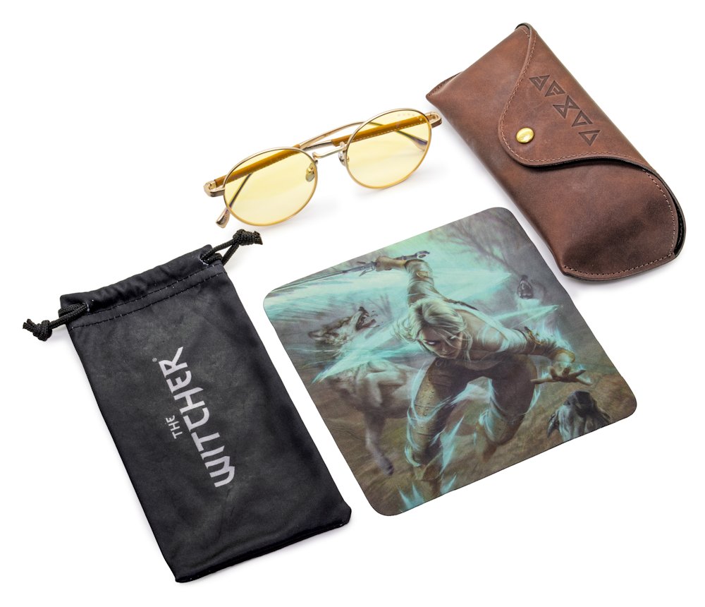 Brýle jsou dodávány v kompletním balení obsahujícím speciální mikrovláknový čisticí hadřík s motivy The Witcher, ochranné pouzdro z mikrovlákna a pevný obal.