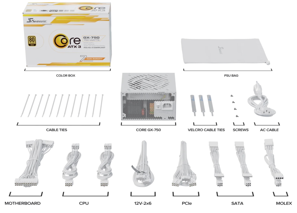 SEASONIC zdroj 650W Core GX-750, ATX 3.1, 80+ Gold, bílý