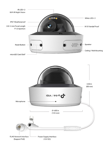 TP-Link VIGI InSight S285 2,8 mm; 8MP IP kamera typu dome se snímačem 1/2,7" CMOS; S rozlišením 3840 × 2160, citlivost 0,005 lux a podporu WDR (120 dB); Pevný objektiv f = 2,8 mm s úhlem záběru horizontálně 110° Součástí kamery je integrovaný...Více info