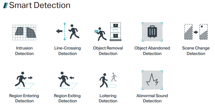 Chytrá detekce (vniknutí, překročení čáry, vstup a výstup z oblasti,